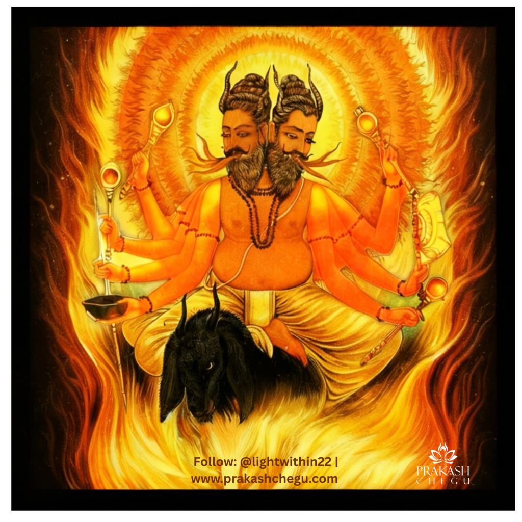 Fire: The Sacred Gateway Between Earth and Heaven Fire is more than heat and light—it is the living bridge between human and divine. In the Vedic vision, Agni is the first to be invoked and the last to depart, the purifier who transforms offerings into blessings, and the messenger who carries prayers upward while drawing […]