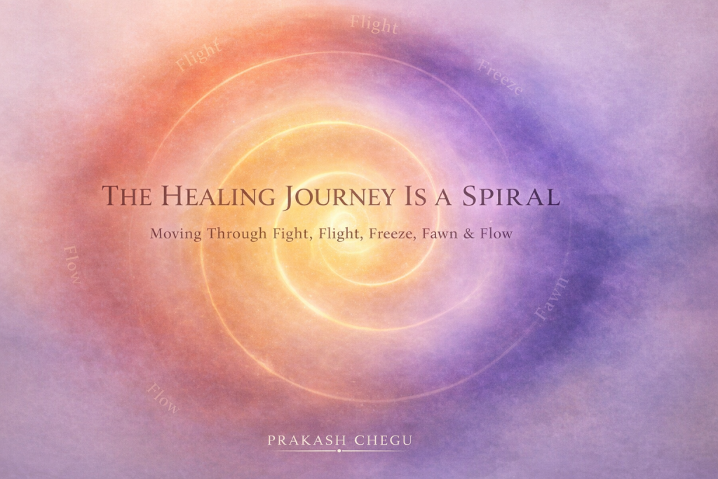It is not a staircase.It is not a checklist you complete and graduate from. Healing is a spiral. We move through states.We revisit old terrain.We encounter familiar emotions, old triggers, ancient patterns. But each time we return, we do so with more awareness.More compassion.More Self. The spiral does not mean you are regressing.It means […]