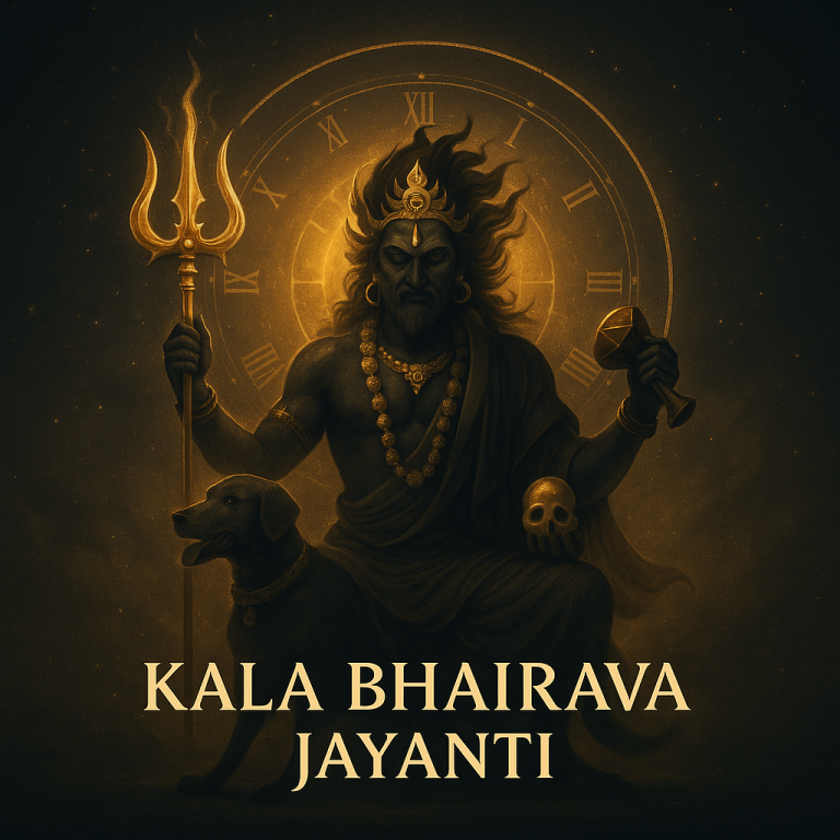 Kala Bhairava Jayanti (Bhairava Ashtami / Kalashtami) honors Shiva’s fierce protector-form who guards time (Kāla) and enforces divine justice (Dharma). Bhairava’s presence doesn’t glorify fear; it destroys the root of fear—ignorance, arrogance, and attachment—so seekers can move toward liberation with clarity, discipline, and courage.
